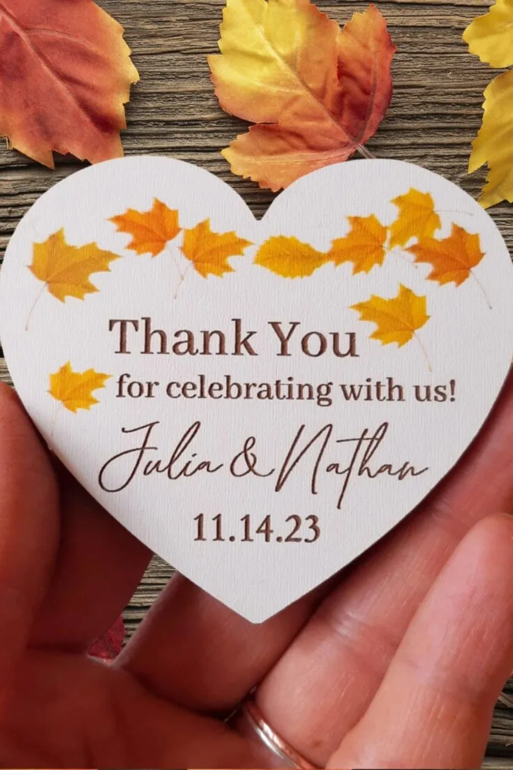 Heart-Shaped Autumn Leaf Wedding Favor Magnets 🍂💛
