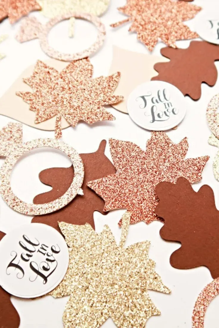 This glittery leaf-shaped confetti adds a romantic touch to your autumn wedding tables. Perfect for scattering across your reception or decorating an engagement party.