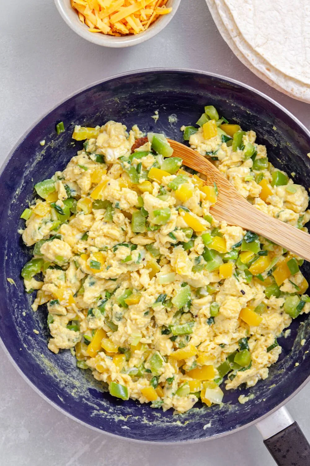 For the creamiest filling, always stir gently and avoid overcooking the eggs. They should be soft and slightly runny when taken off the heat, as they will continue to cook in the warmth of the skillet. Also, preheat your tortillas on a dry skillet or in the microwave for a few seconds to make them pliable and easy to roll.