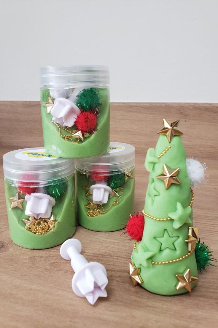 Kids build and decorate a mini Christmas tree with soft green playdough and cute loose-part decorations. A simple craft that boosts fine motor skills and makes a perfect stocking filler.