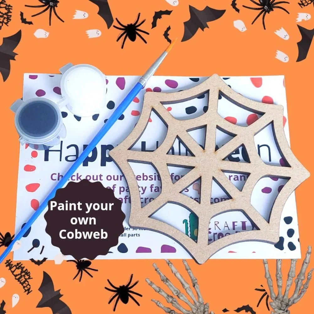 Kids can paint and decorate their own wooden spider web with this fun Halloween party craft—includes paint, glitter, and string.