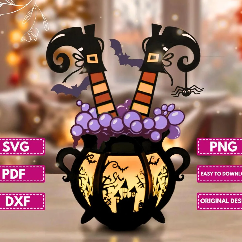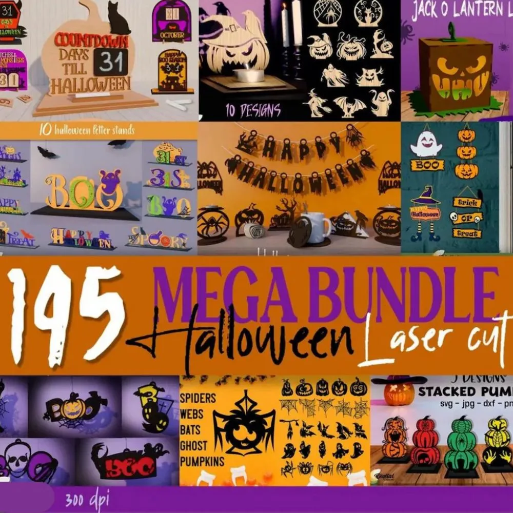 A huge digital bundle of Halloween craft templates—includes pumpkins, candle holders, signs, spooky frames, and more to cut and create.
