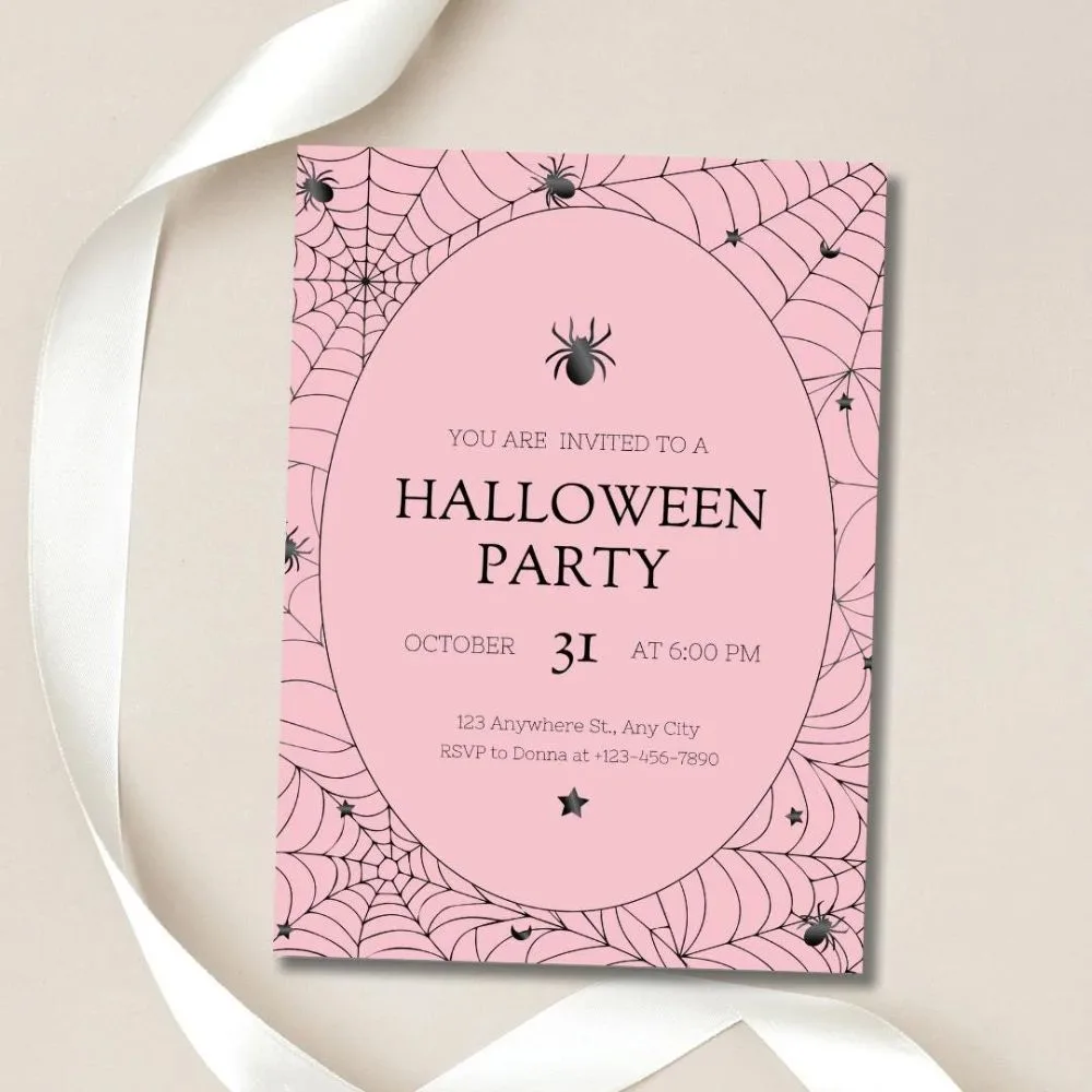🎀 Pink Spider Web Halloween Invitation (Digital Download)