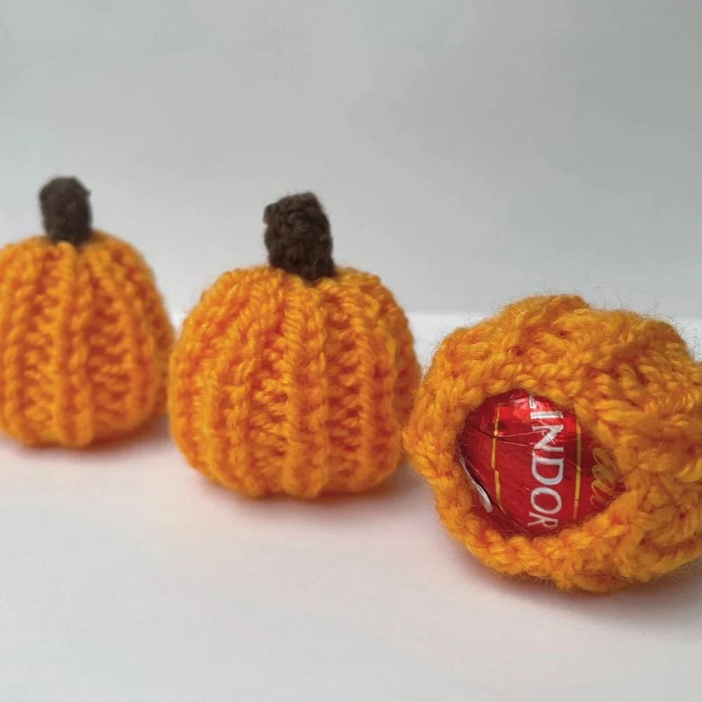 Adorable hand-knitted mini pumpkin that fits a Lindt truffle inside! Perfect for Halloween tables, trick-or-treaters, or party favours. 🍬🧶