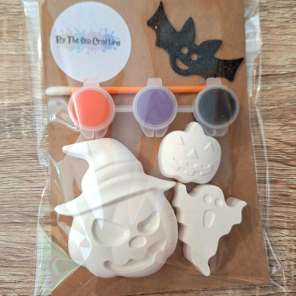 These spooky paint-your-own kits are perfect party favours! Each bag includes Halloween models, paints, and a brush—fun, creative, and ready to gift!