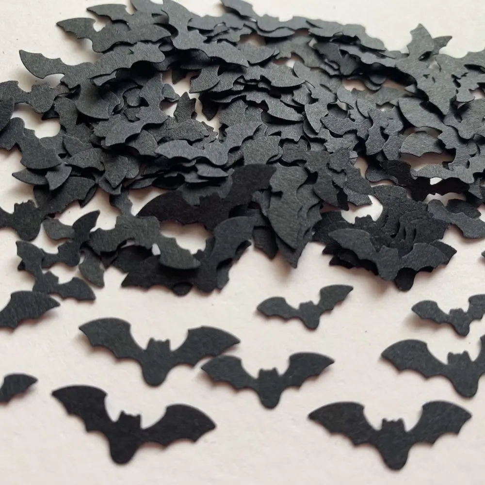 Add a spooky touch to your table with these handmade black bat confetti pieces. Perfect for party decor, crafts, or spooky place settings!