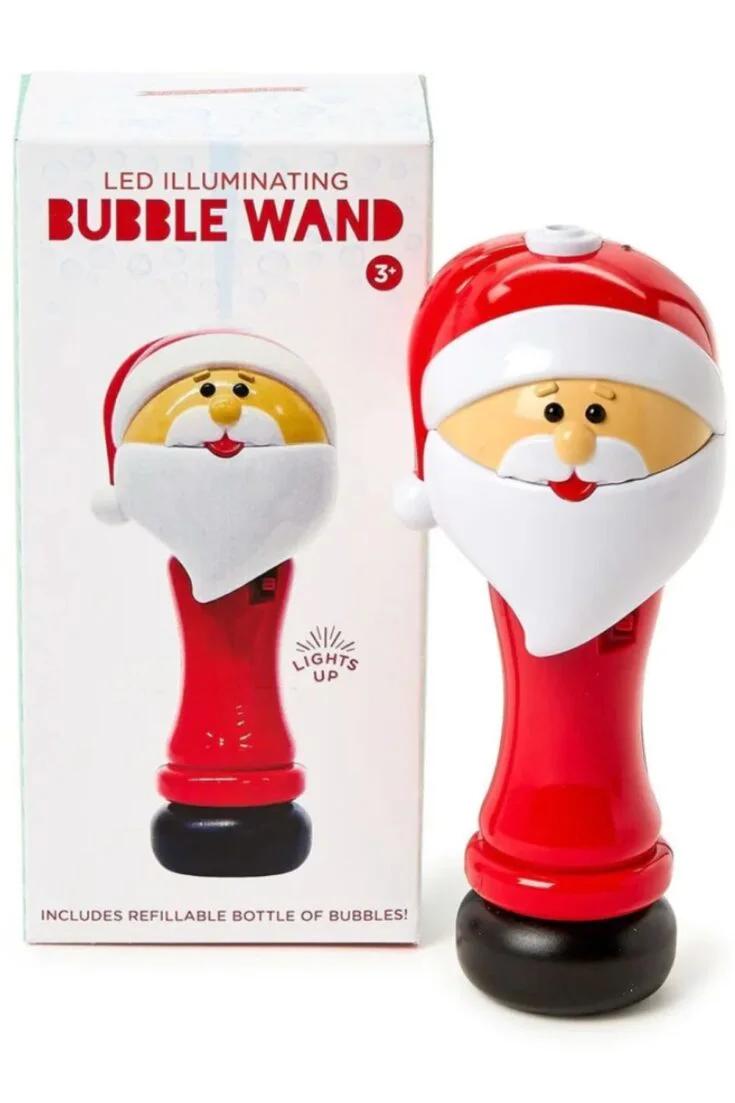 A magical bubble wand with lights and Santa design—fun, festive, and a perfect Christmas stocking stuffer for kids.