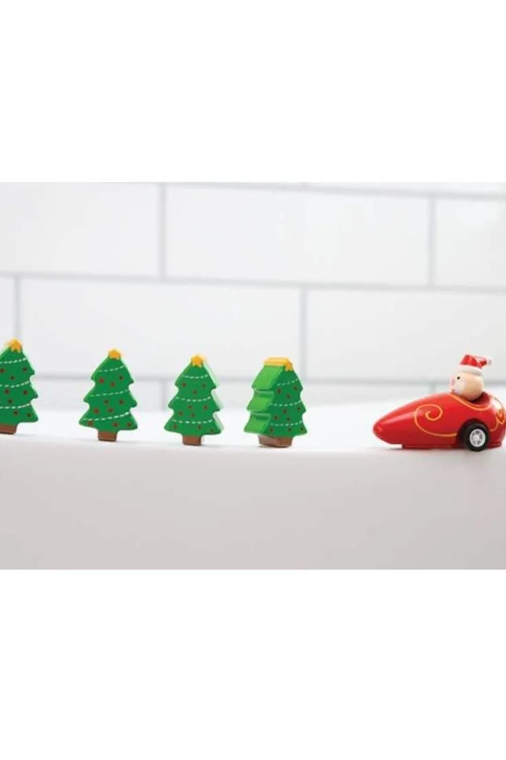 Pull back and watch Santa zoom off! A festive racing toy that makes a fun and playful stocking stuffer for kids.