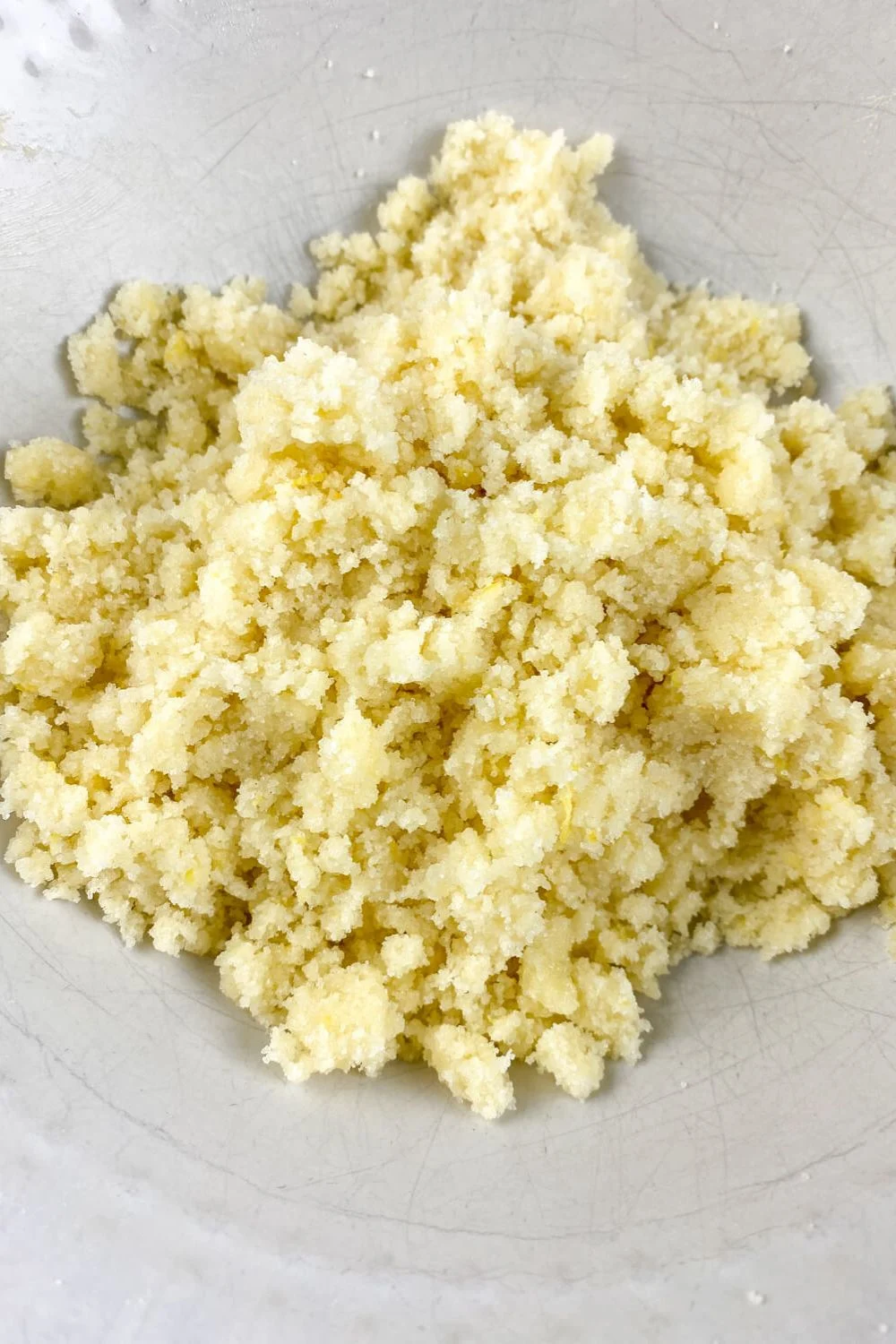 - Make the crumb topping by mixing sugar, flour, lemon zest, and butter until crumbly. Set aside.
