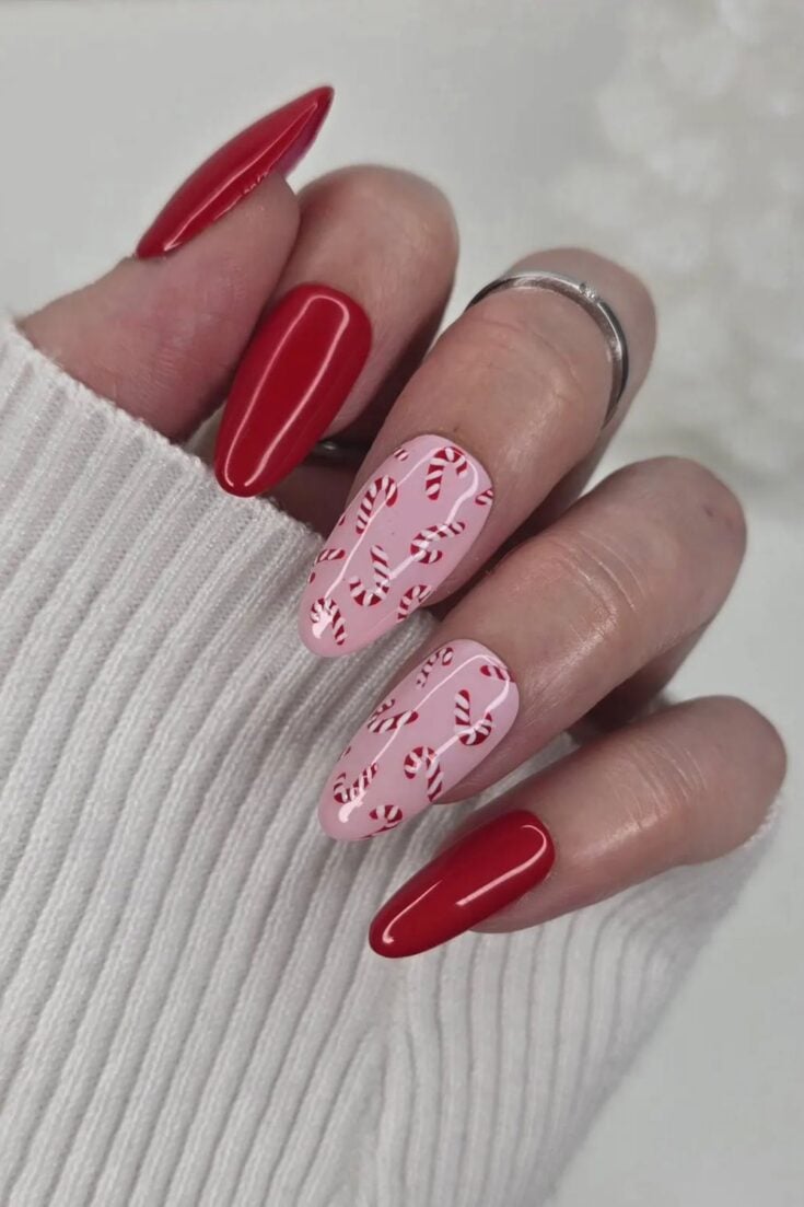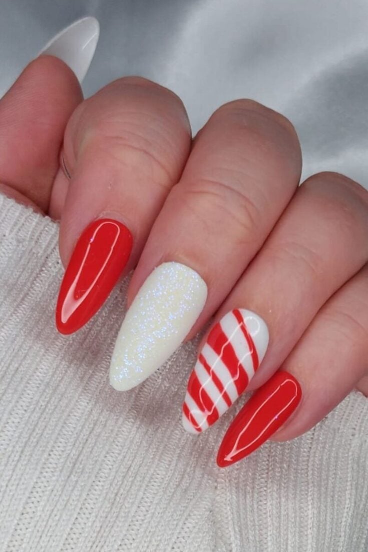 Candy Cane Almond Nails