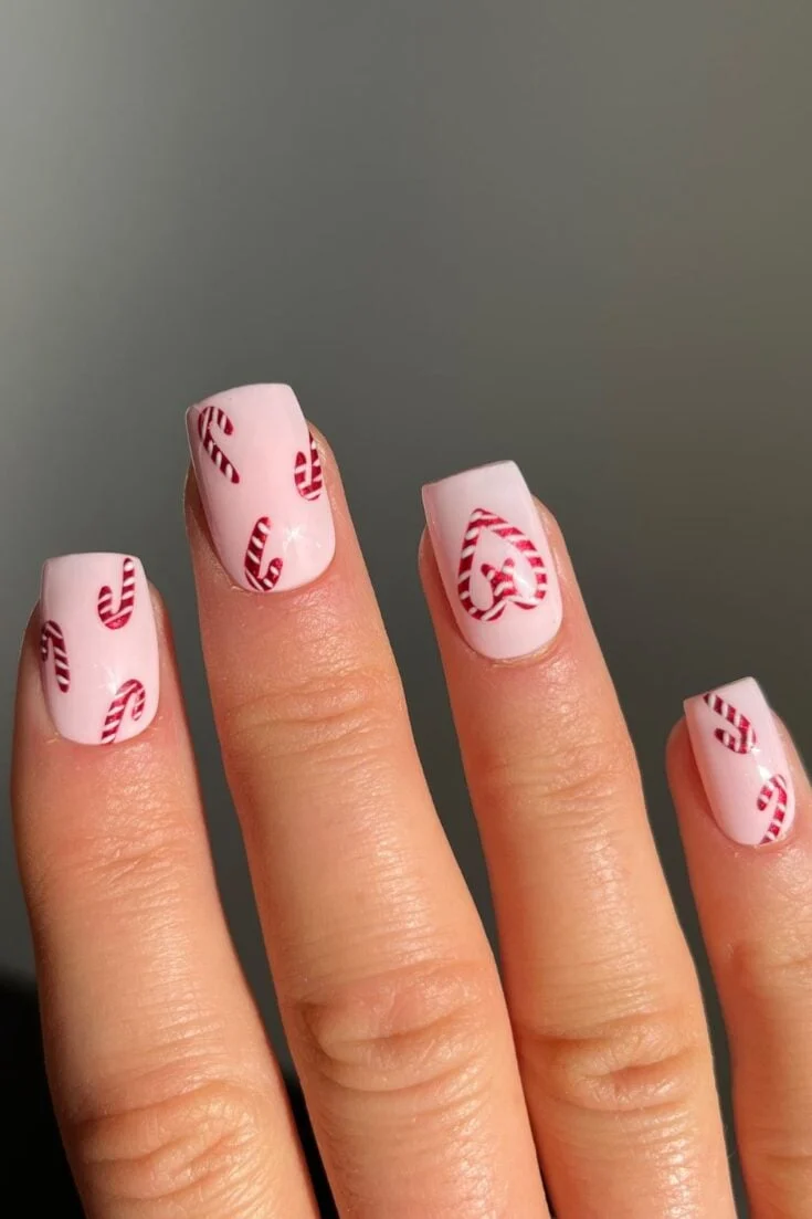 Soft pink and red candy cane stripes with a cute festive finish. Bright, fun, and perfect for Christmas.