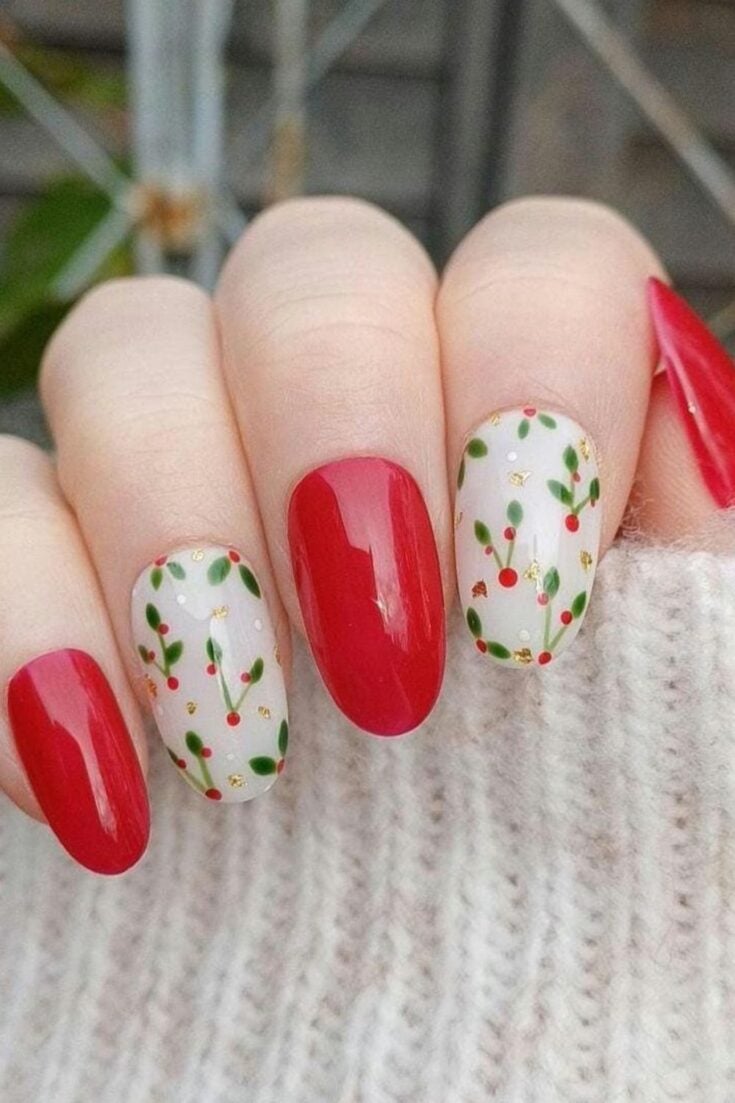 Classic Red Christmas Nails with Holly