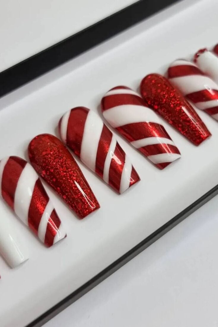Red Glitter Candy Cane Nails