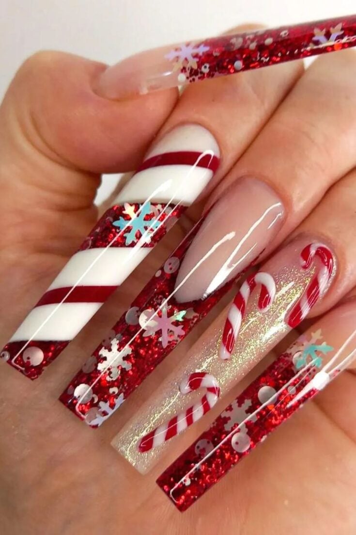 Candy Cane Sparkle Coffin Nails