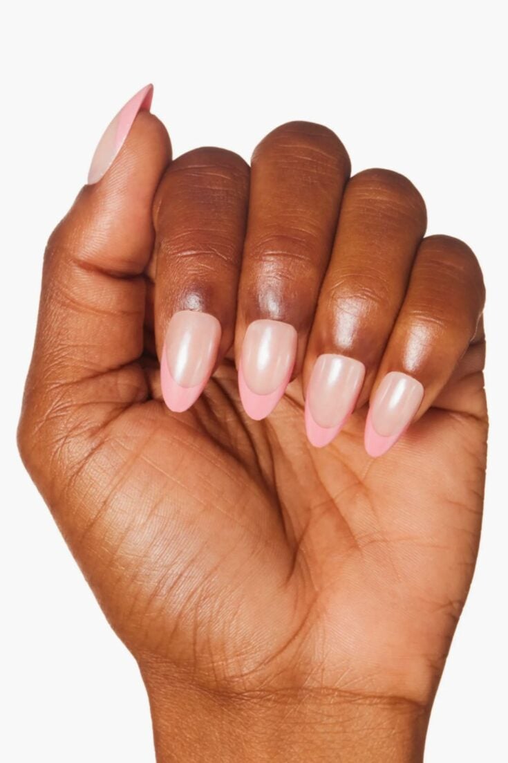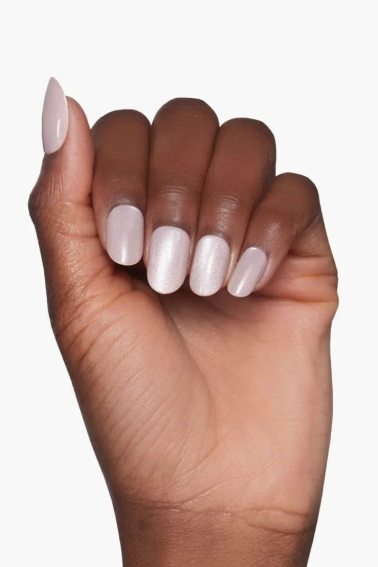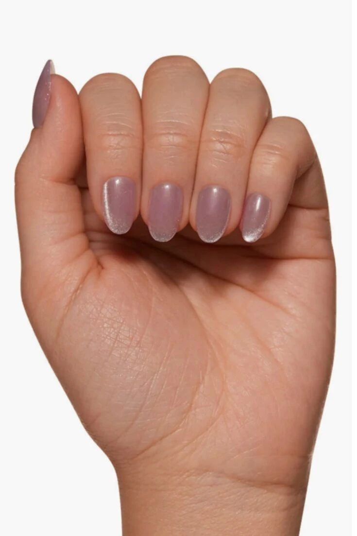 High-impact shine, zero salon time. These velvet-pink OPI press-ons give instant glam with up to 14 days of wear.