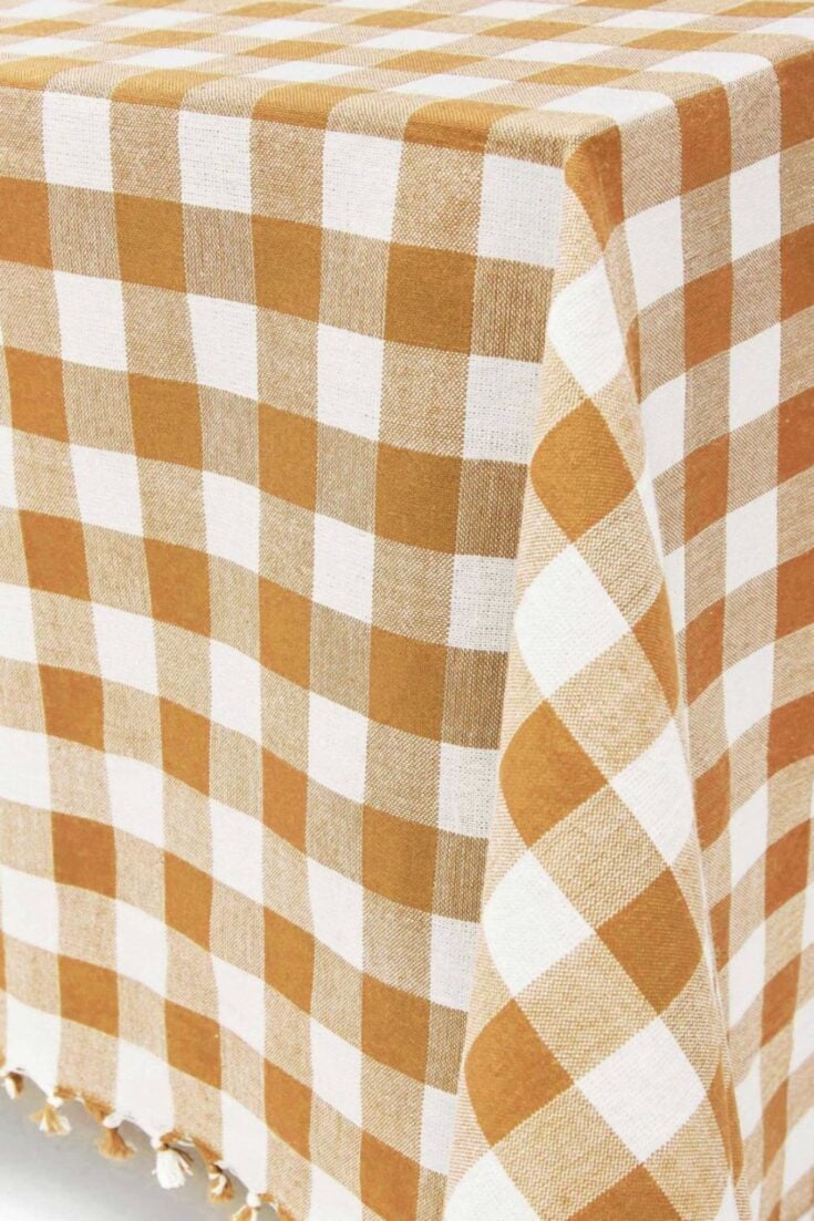 Add warmth to your Thanksgiving tablescape with the Gingham Goldenrod Tablecloth. Handwoven cotton, timeless gingham pattern, and a golden hue make it perfect for fall dinners, festive hosting, and Friendsgiving celebrations.